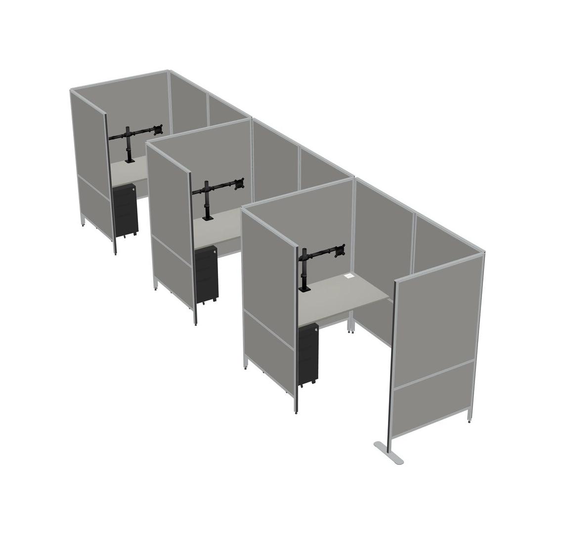 Grey Shadows Small Private Panel System + Panel System + Metal Mobile Drawers