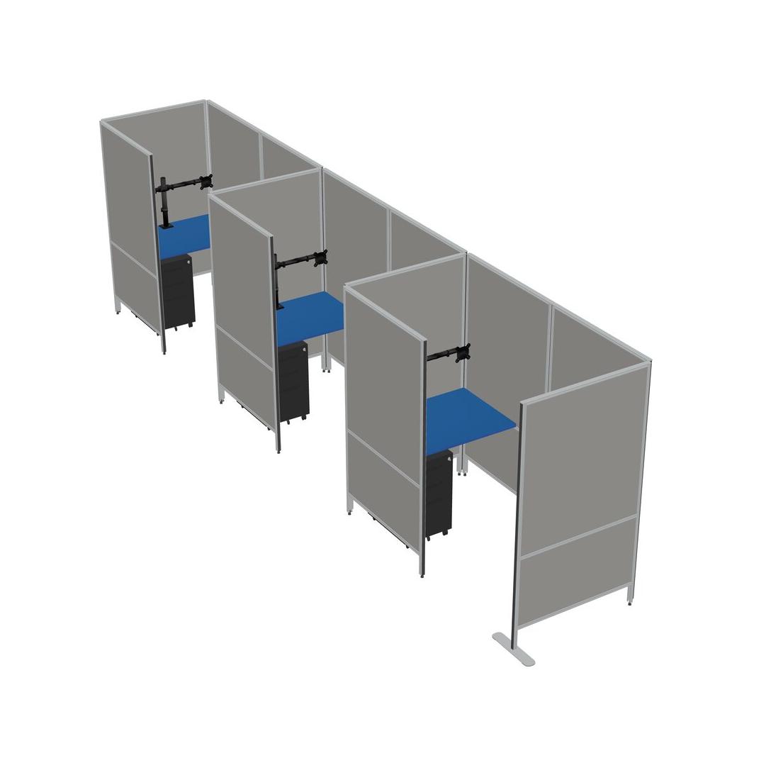 Prism Blue Small Private Panel System + Panel System + Metal Mobile Drawers
