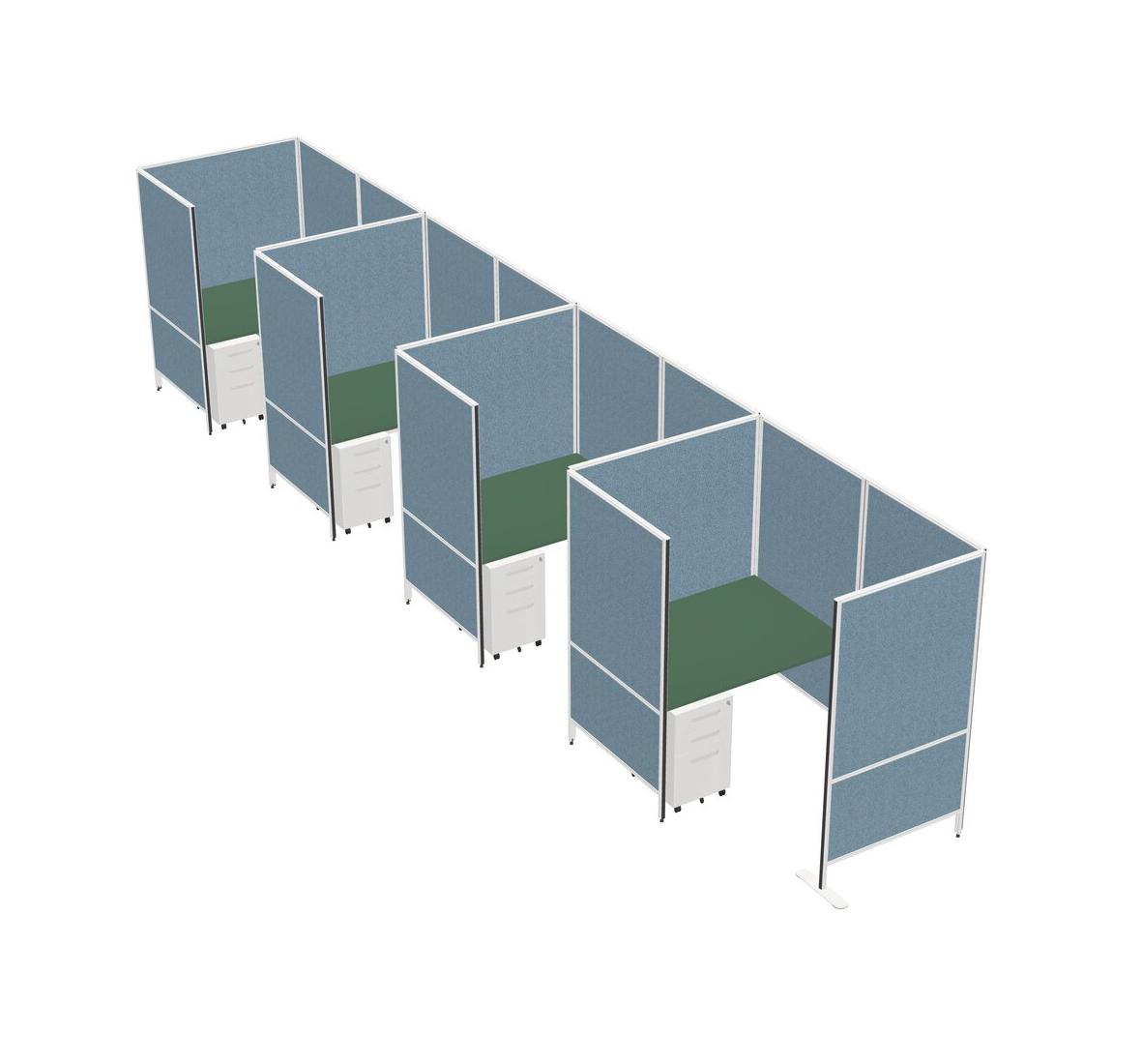 Green Small Private Panel System + Panel System + Metal Mobile Drawers