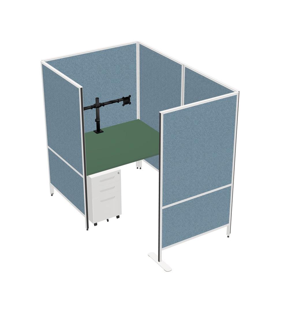 Green Small Private Panel System + Metal Mobile Drawers