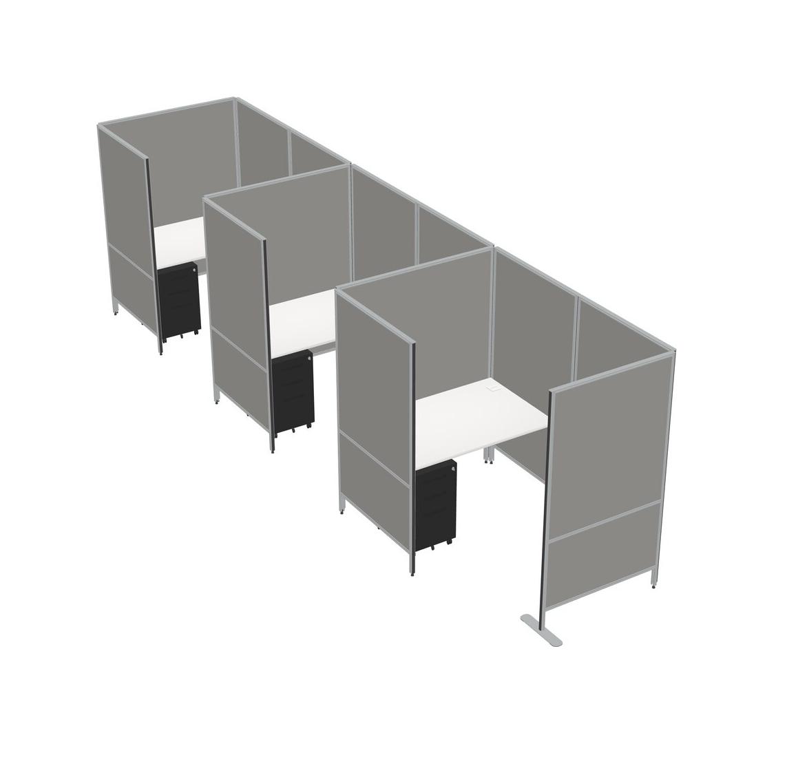 White Small Private Panel System + Panel System + Metal Mobile Drawers