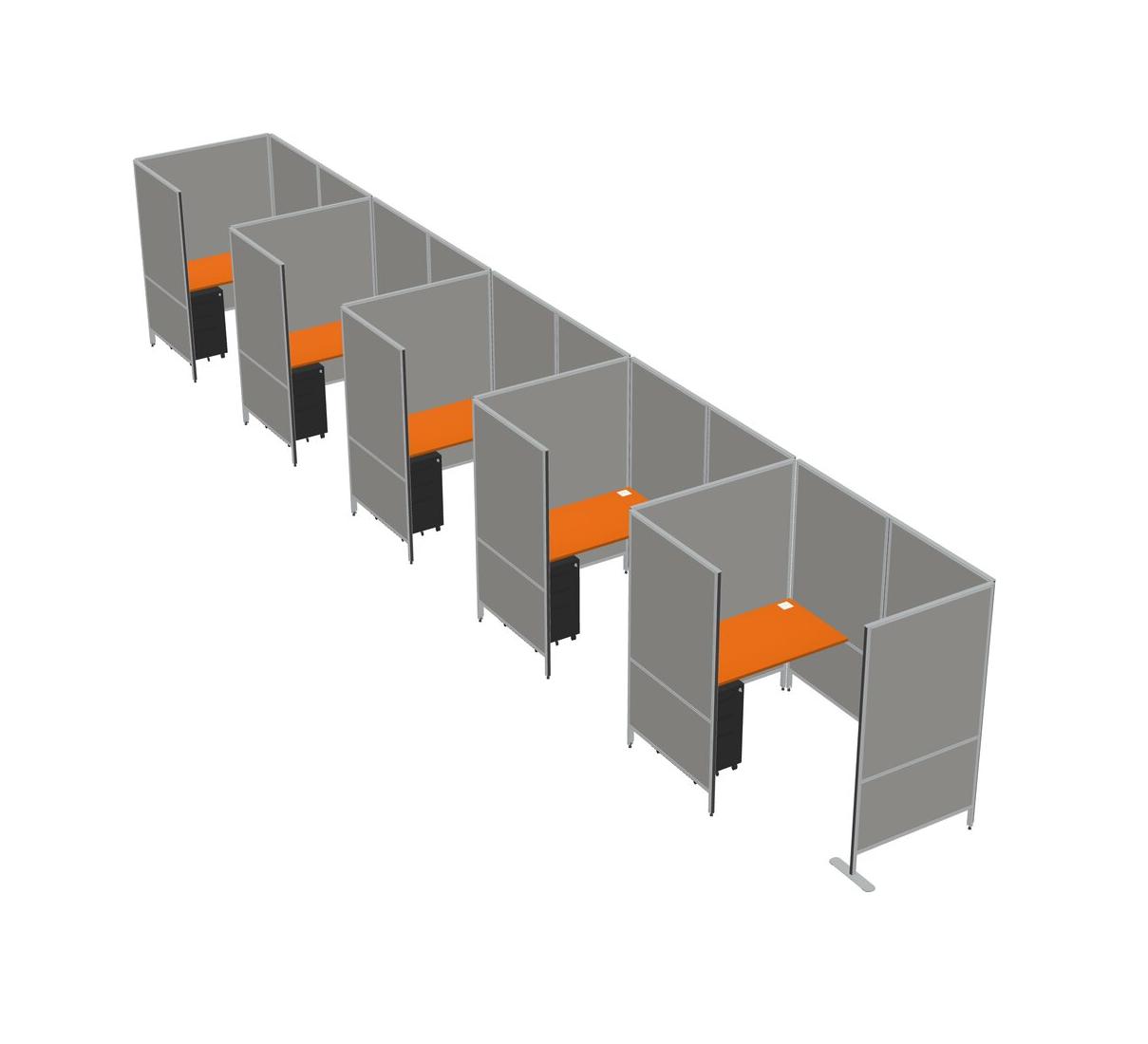 Orange Small Private Panel System + Panel System + Metal Mobile Drawers