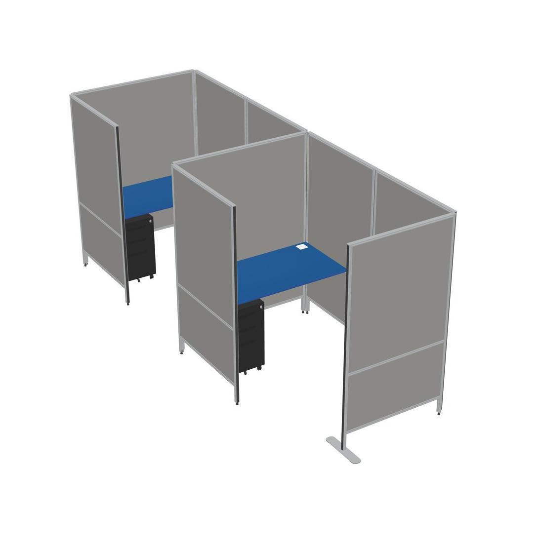 Prism Blue Small Private Panel System + Panel System + Metal Mobile Drawers