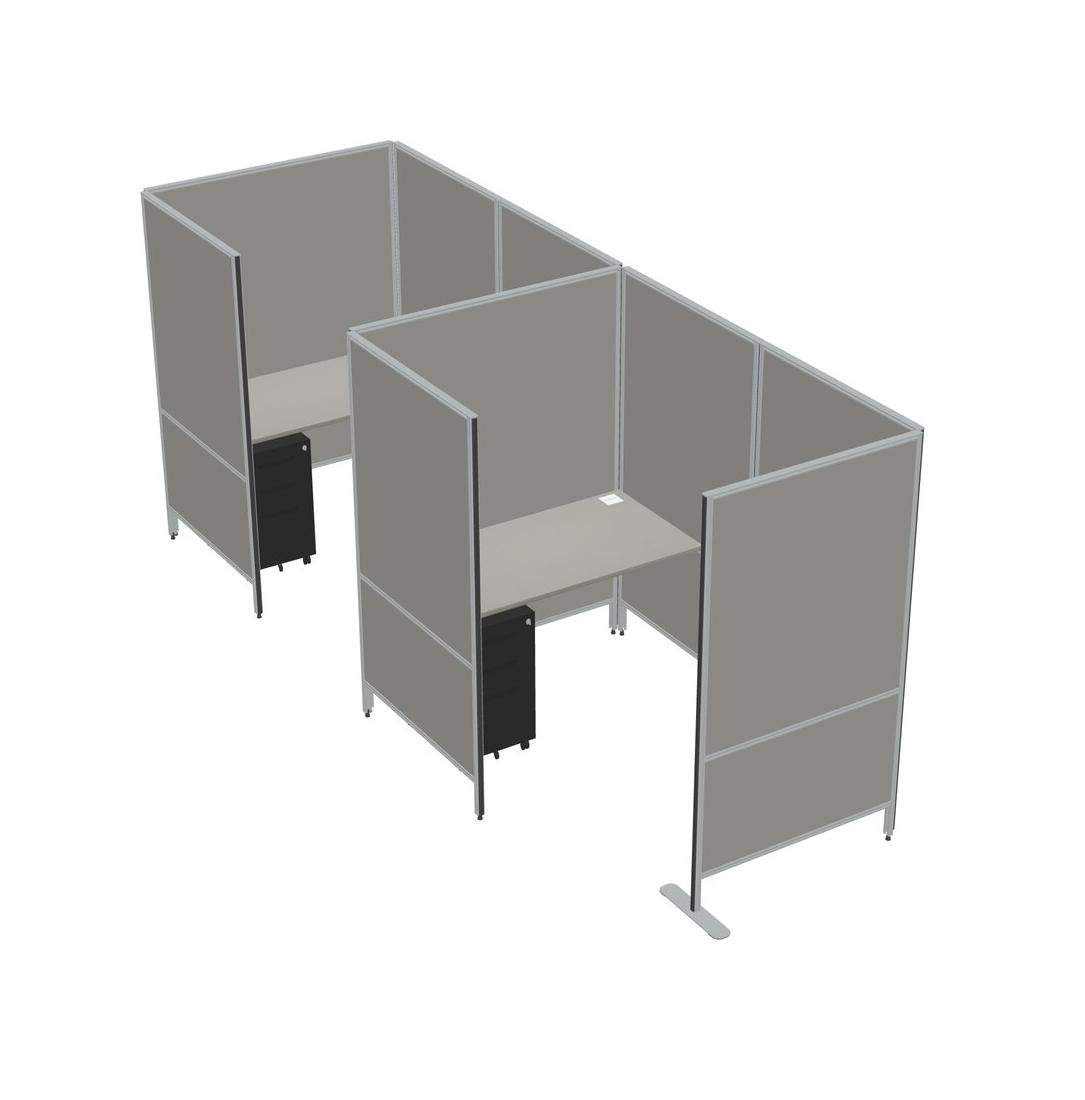 Grey Shadows Small Private Panel System + Panel System + Metal Mobile Drawers