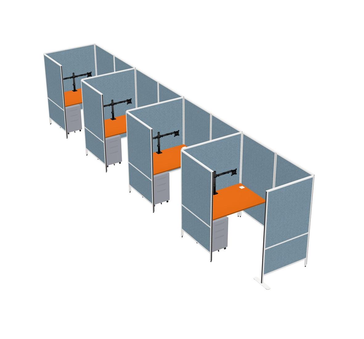 Orange Small Private Panel System + Panel System + Metal Mobile Drawers