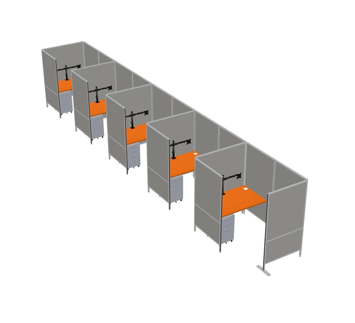 Orange Small Private Panel System + Panel System + Metal Mobile Drawers