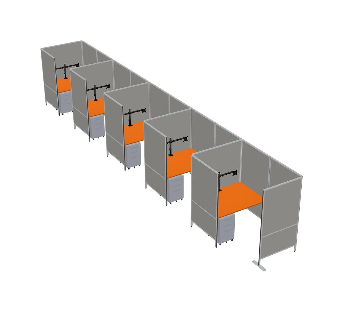 Orange Small Private Panel System + Panel System + Metal Mobile Drawers