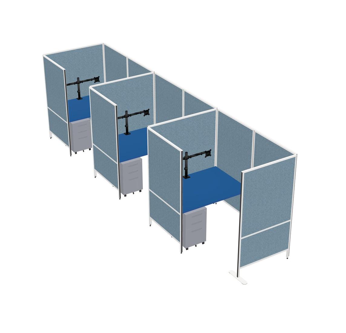 Prism Blue Small Private Panel System + Panel System + Metal Mobile Drawers