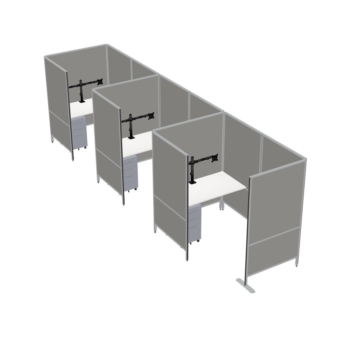 White Small Private Panel System + Panel System + Metal Mobile Drawers