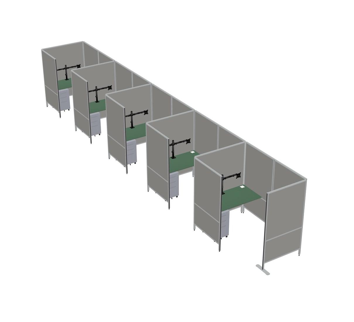 Green Small Private Panel System + Panel System + Metal Mobile Drawers