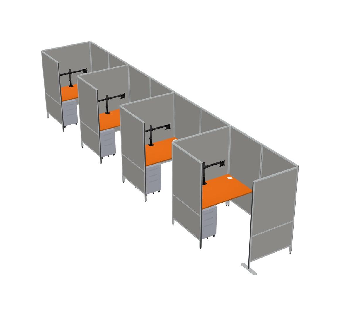 Orange Small Private Panel System + Panel System + Metal Mobile Drawers