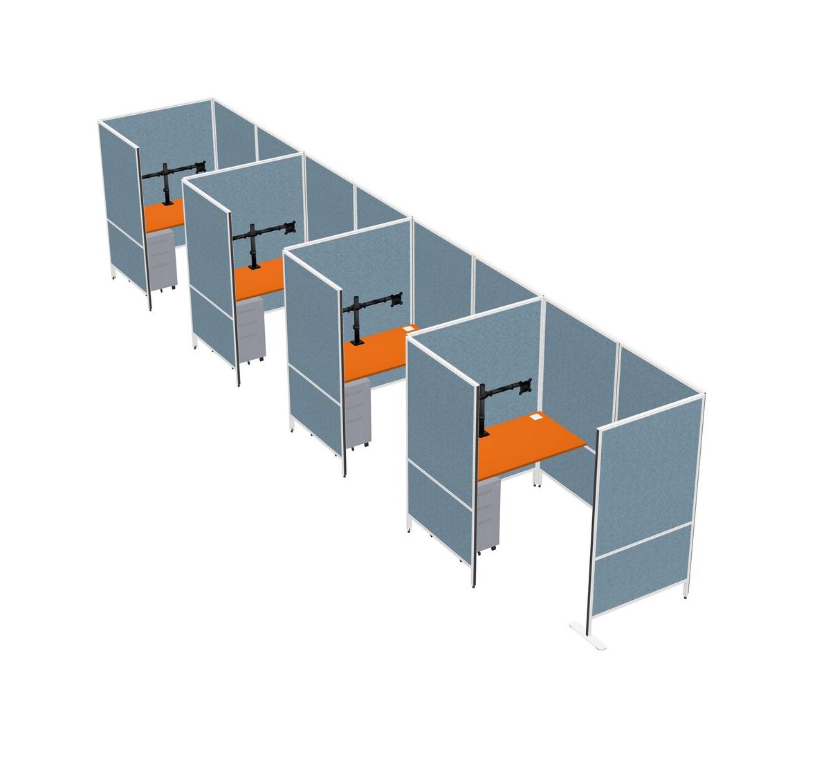 Orange Small Private Panel System + Panel System + Metal Mobile Drawers