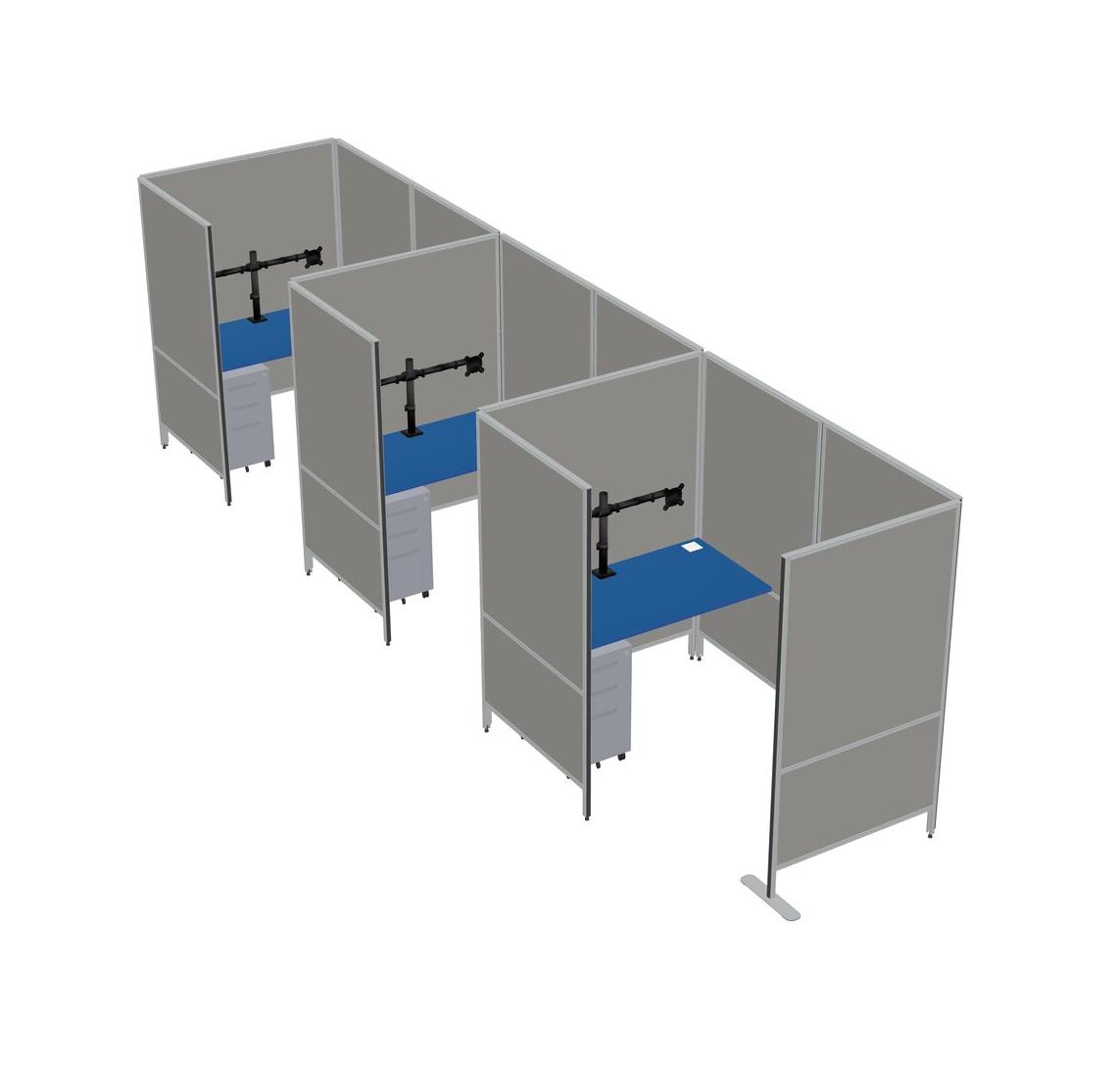 Prism Blue Small Private Panel System + Panel System + Metal Mobile Drawers
