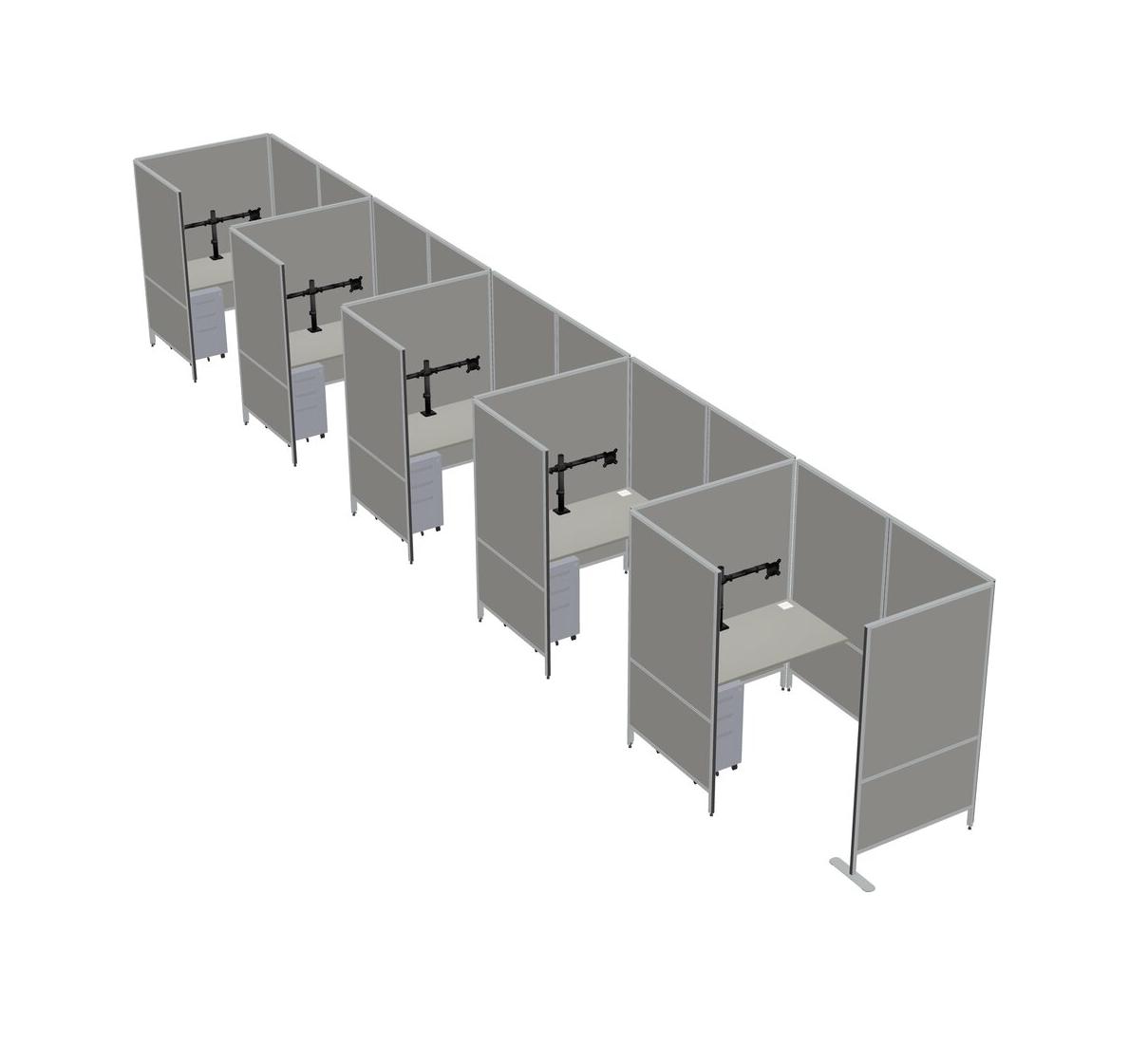 Grey Shadows Small Private Panel System + Panel System + Metal Mobile Drawers