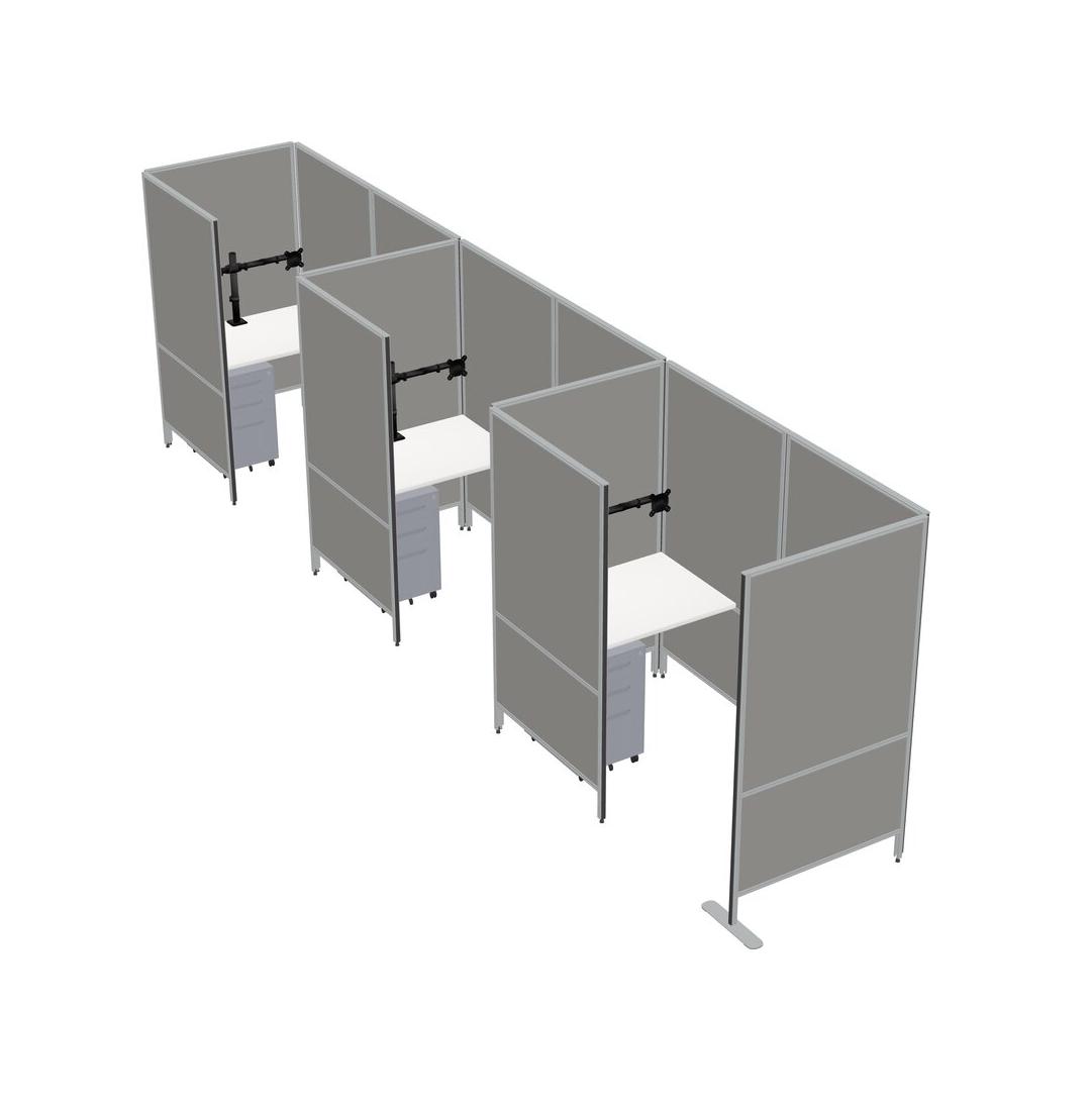 White Small Private Panel System + Panel System + Metal Mobile Drawers