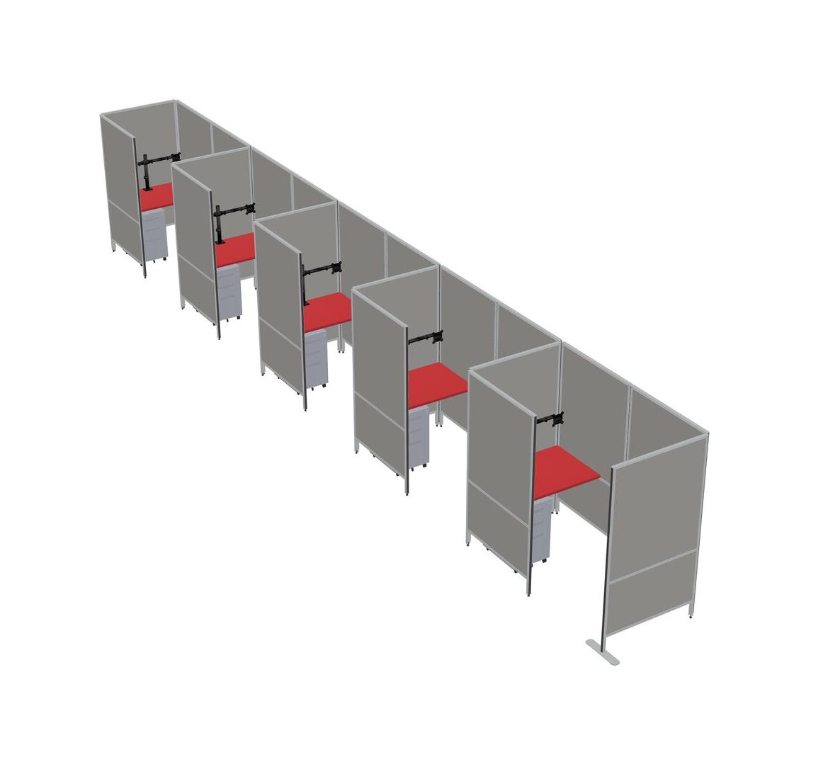 Prism Red Small Private Panel System + Panel System + Metal Mobile Drawers