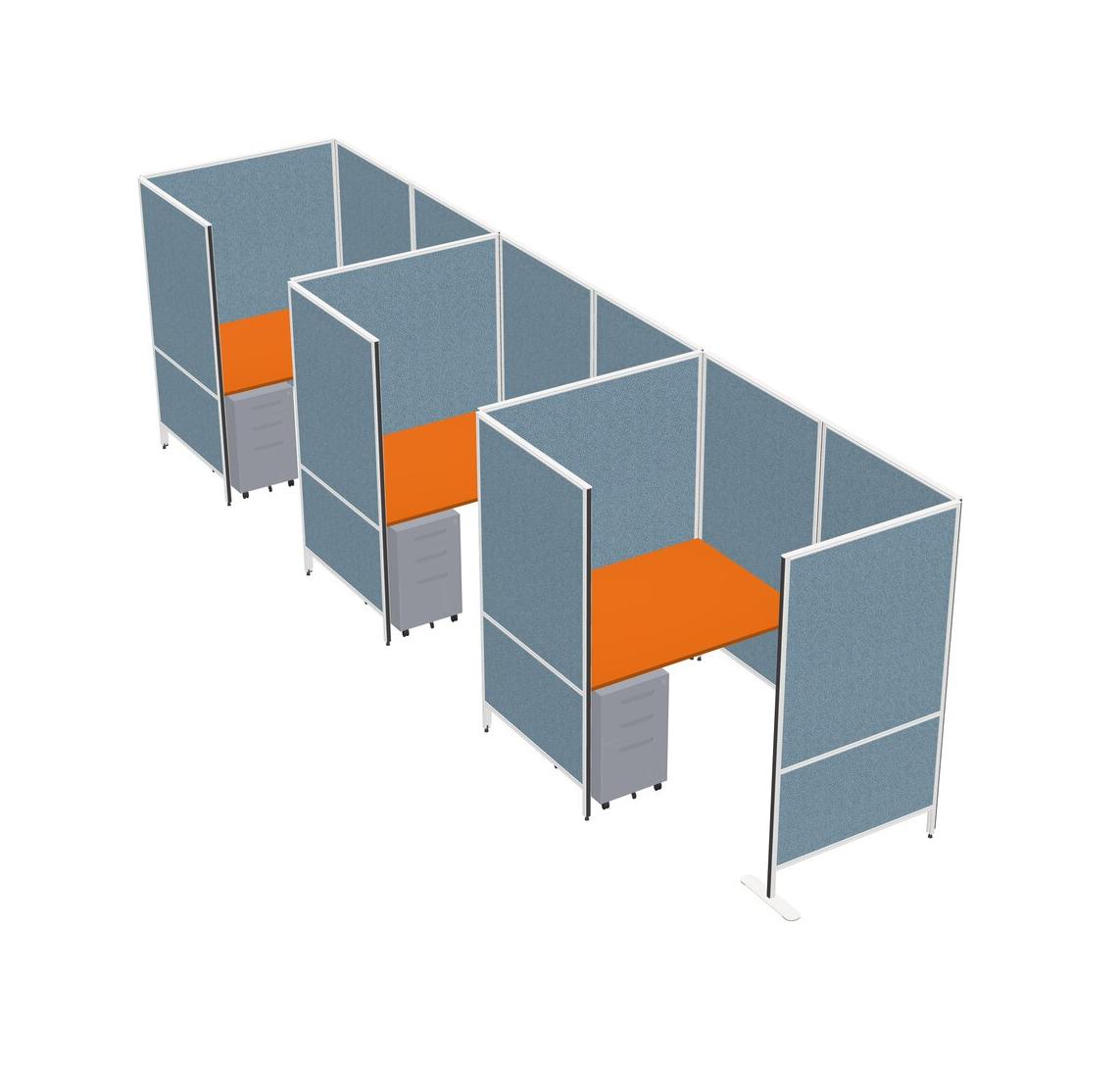 Orange Small Private Panel System + Panel System + Metal Mobile Drawers