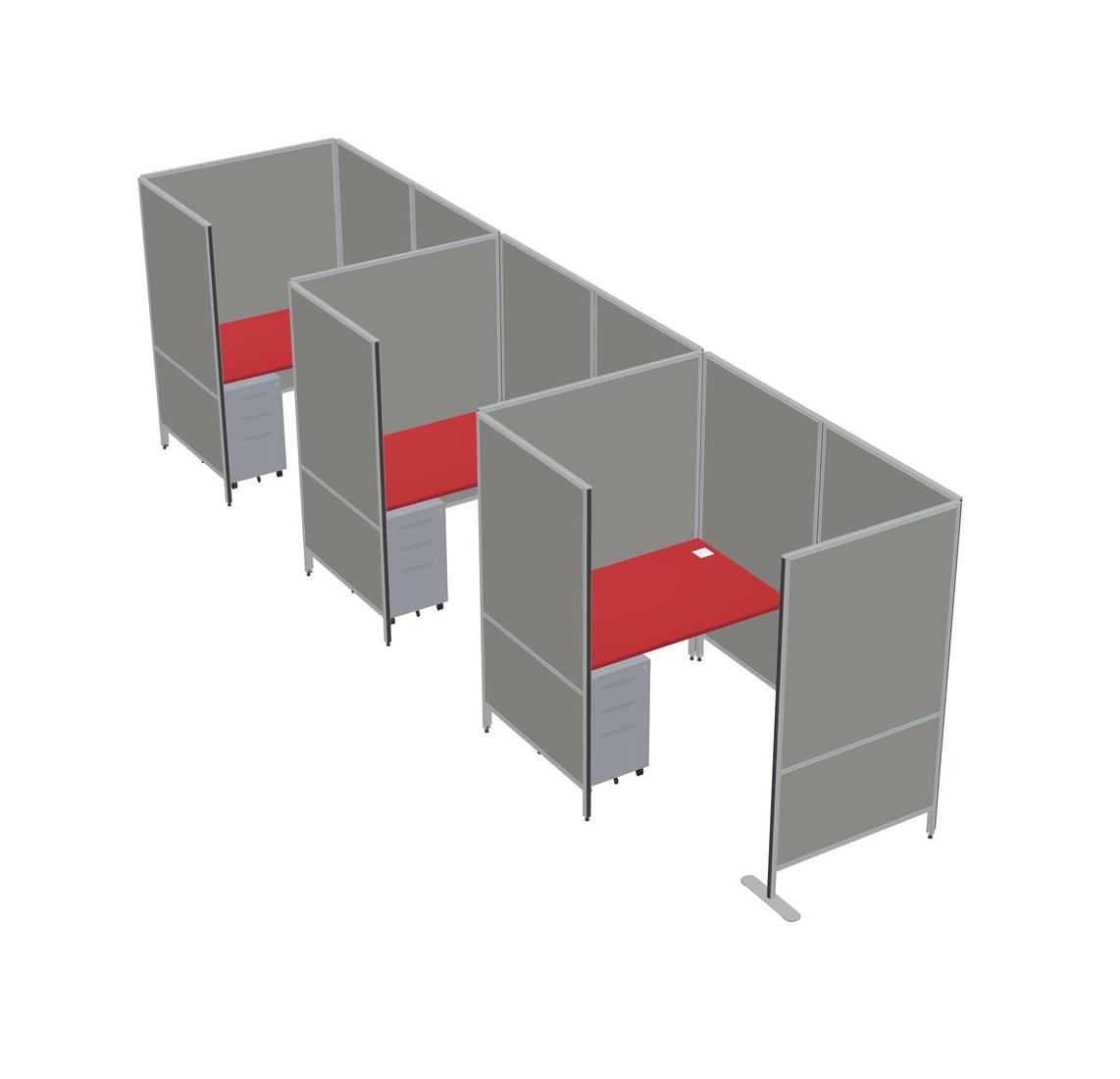Prism Red Small Private Panel System + Panel System + Metal Mobile Drawers