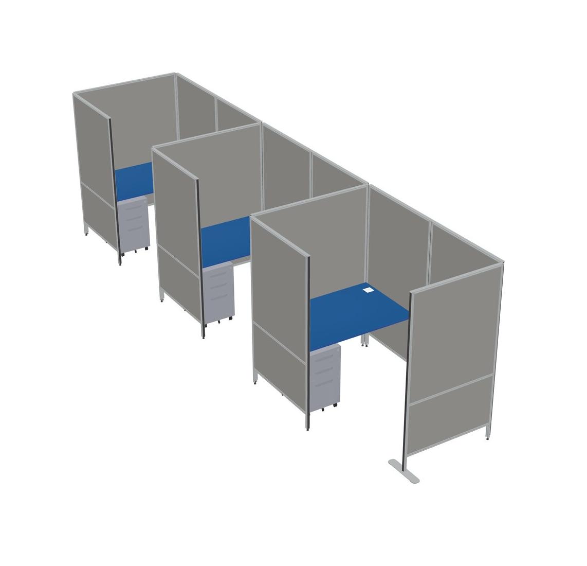 Prism Blue Small Private Panel System + Panel System + Metal Mobile Drawers