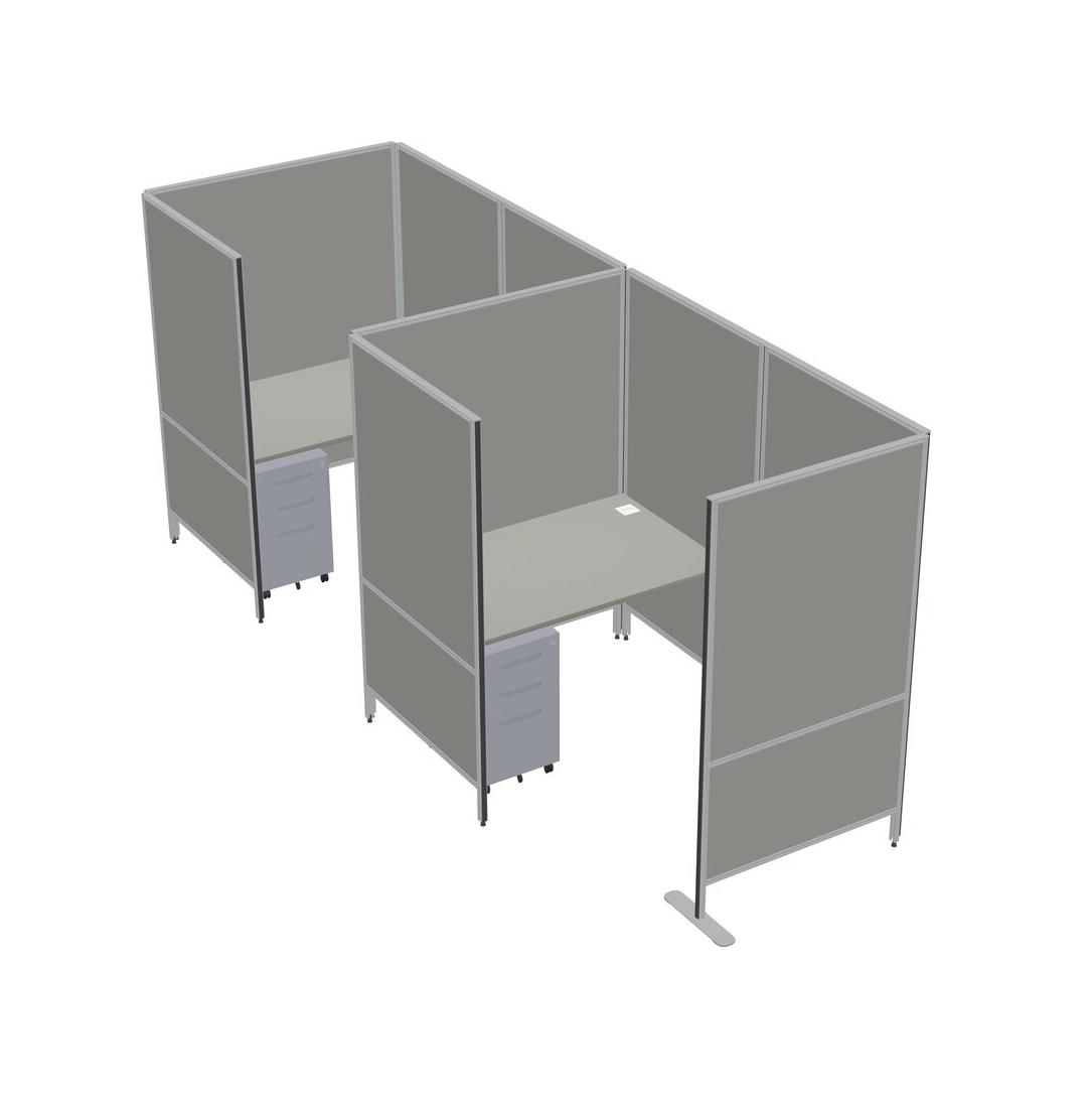Grey Shadows Small Private Panel System + Panel System + Metal Mobile Drawers
