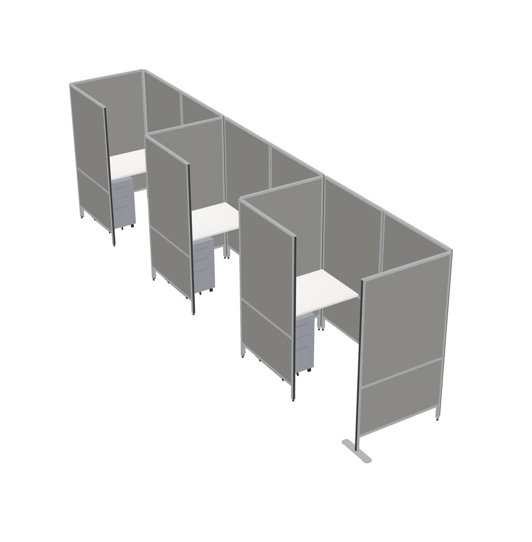 White Small Private Panel System + Panel System + Metal Mobile Drawers