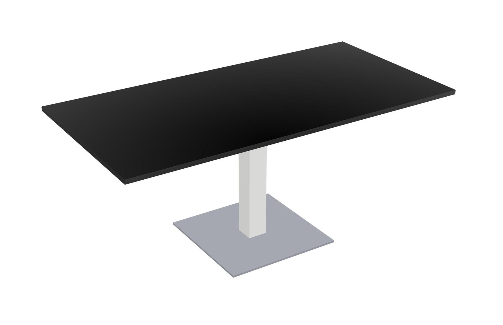 Modular Office, Restaurant, Cafeteria, Lunch Room & Food Service Table With Black Tabletop & White Square Leg & Grey Square Base Plate