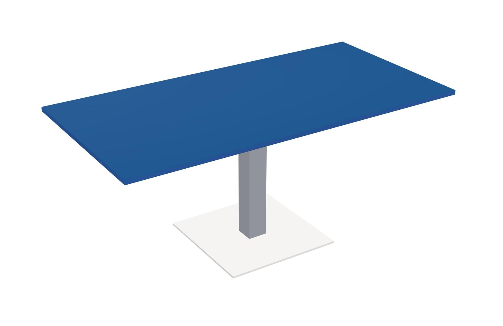 Modular Office, Restaurant, Cafeteria, Lunch Room & Food Service Table With Prism Blue Tabletop & Grey Square Leg & White Square Base Plate