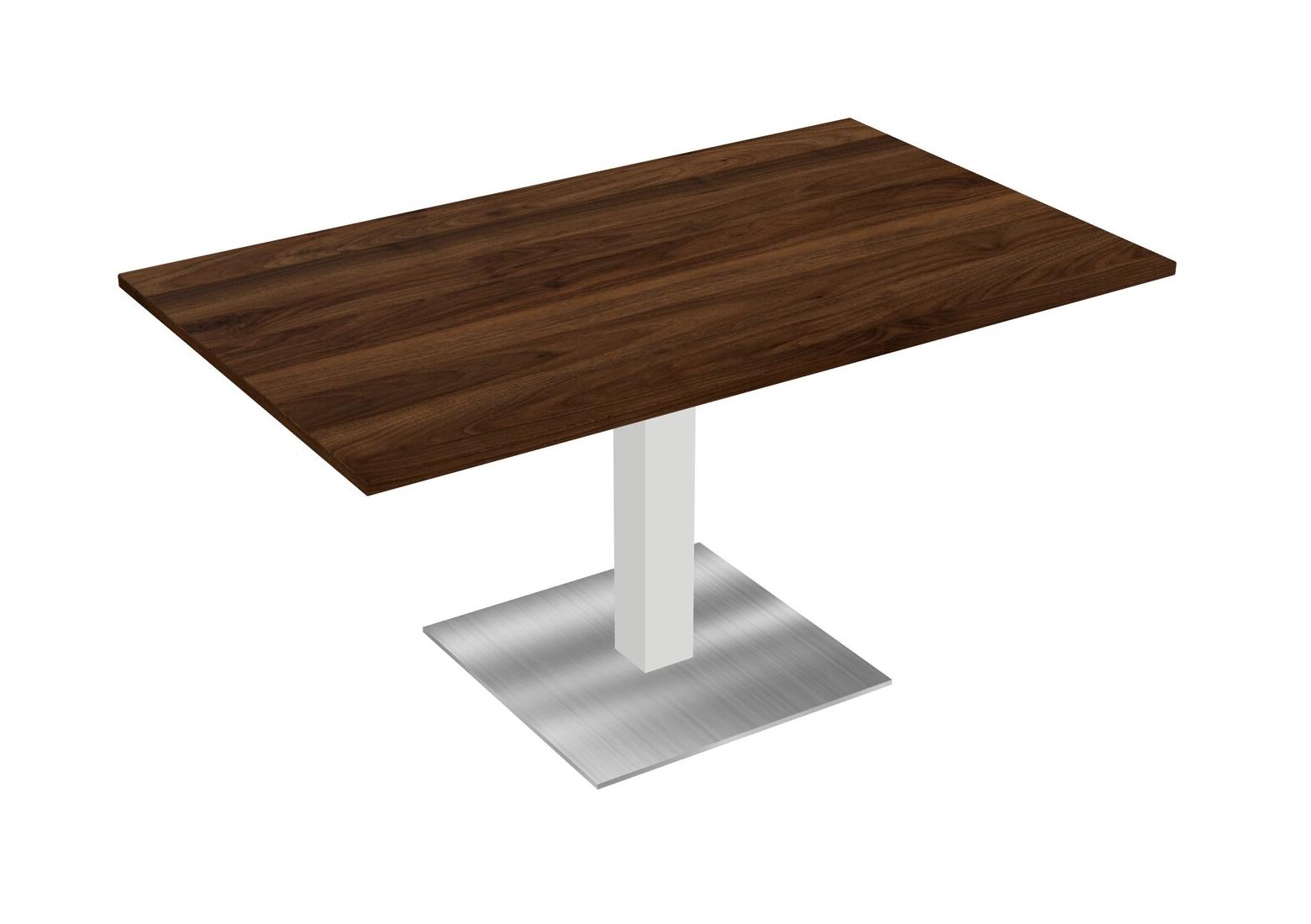Modular Office, Restaurant, Cafeteria, Lunch Room & Food Service Table With Columbia Walnut Tabletop & White Square Leg & Chrome Square Base Plate