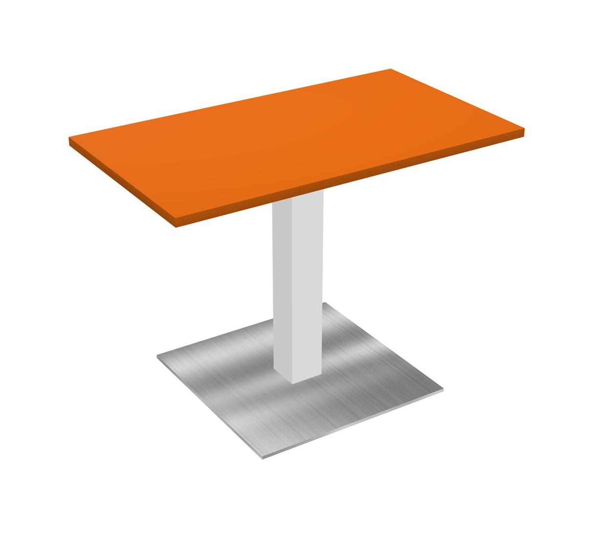 Modular Office, Restaurant, Cafeteria, Lunch Room & Food Service Table With Orange Tabletop & White Square Leg & Chrome Square Base Plate