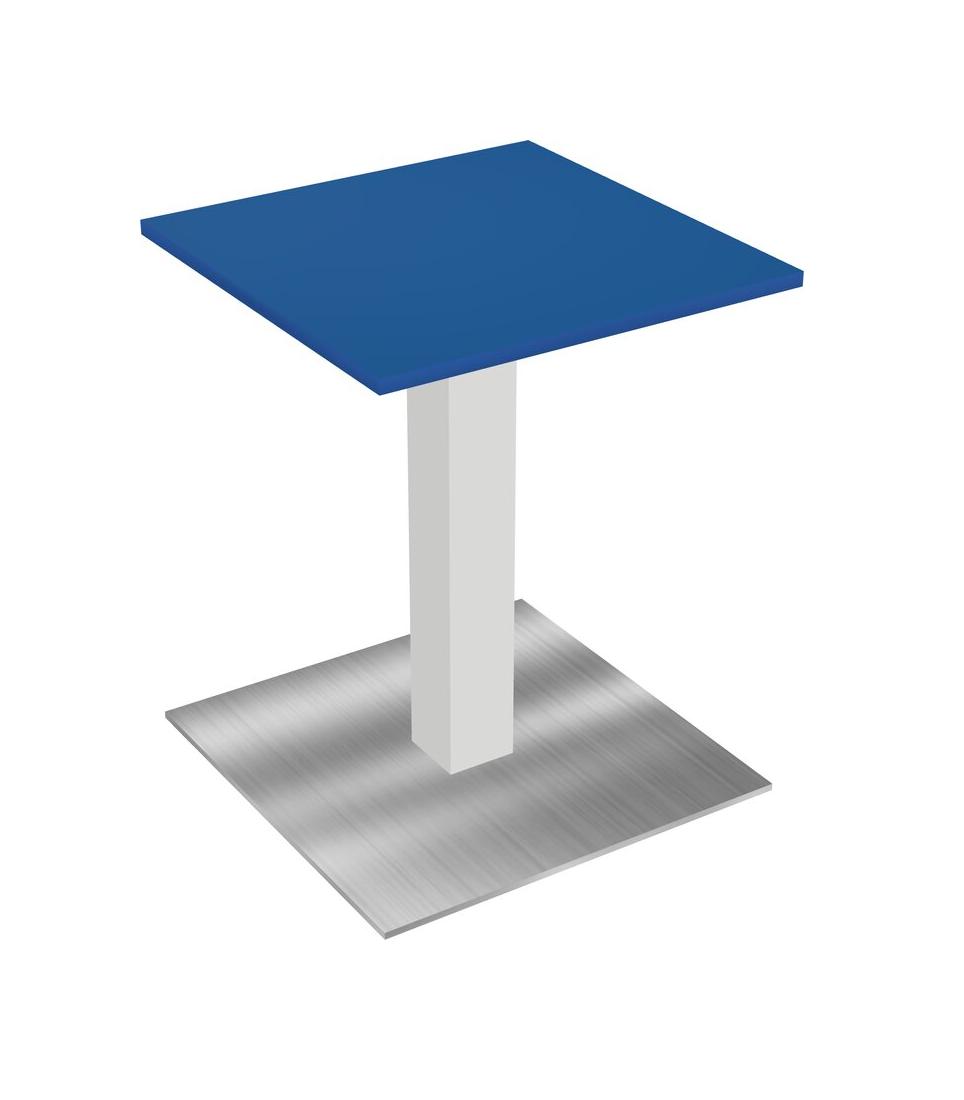 Modular Office, Restaurant, Cafeteria, Lunch Room & Food Service Table With Prism Blue Tabletop & White Square Leg & Chrome Square Base Plate