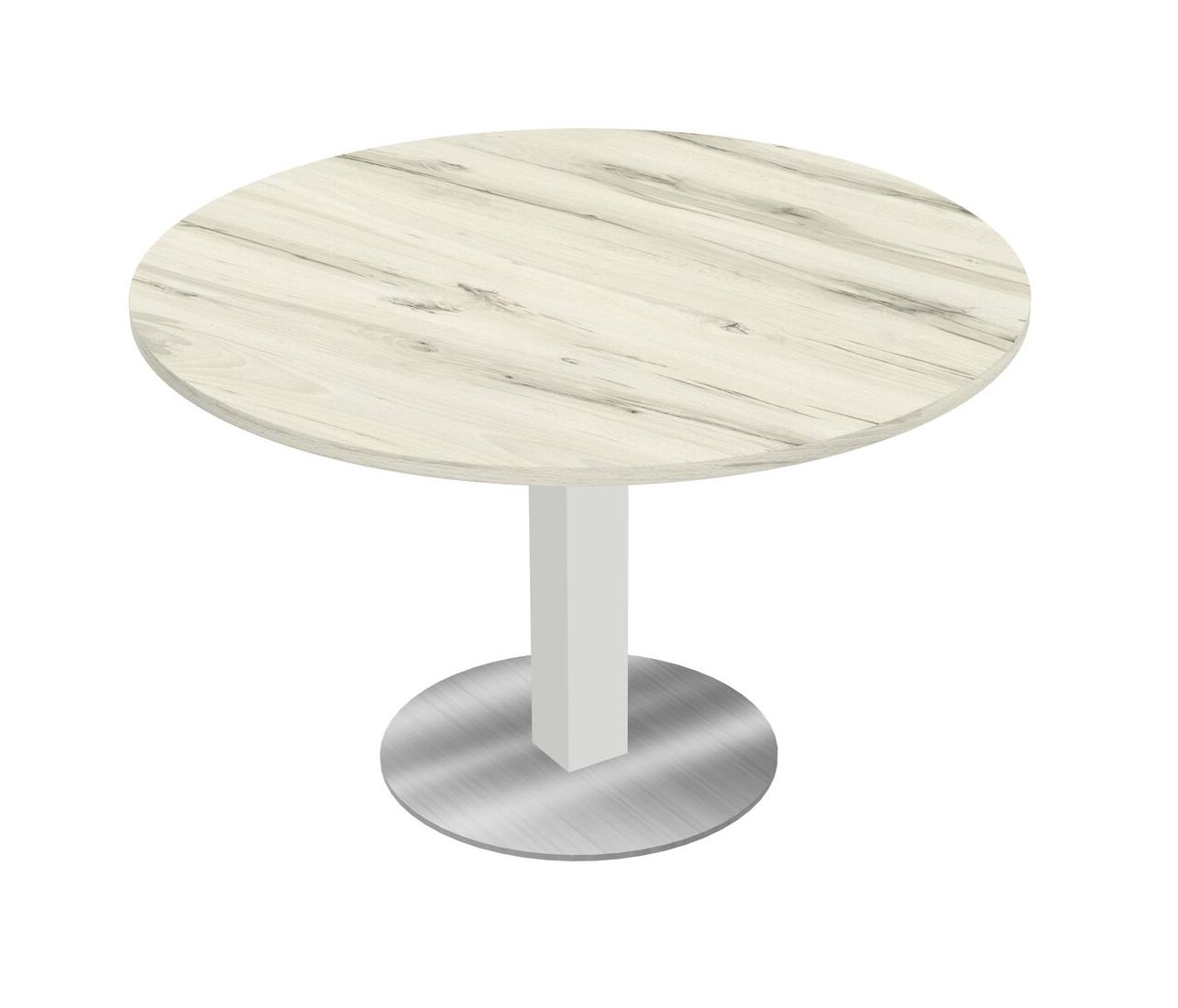 Modular Office, Restaurant, Cafeteria, Lunch Room & Food Service Table With Heinne Holz Tabletop & White Square Leg & Chrome Round Base Plate