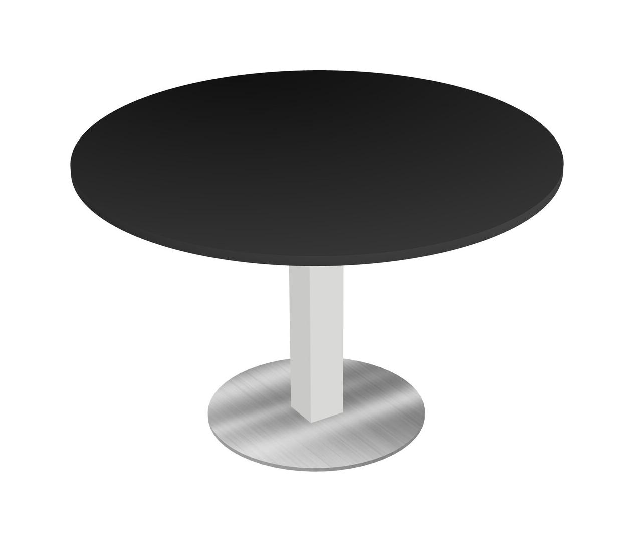 Modular Office, Restaurant, Cafeteria, Lunch Room & Food Service Table With Black Tabletop & White Square Leg & Chrome Round Base Plate