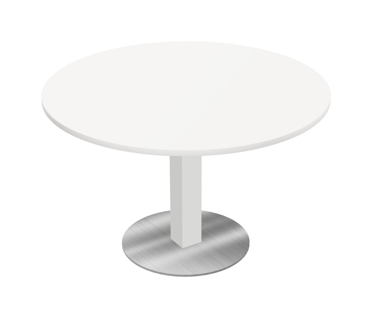 Modular Office, Restaurant, Cafeteria, Lunch Room & Food Service Table With White Tabletop & White Square Leg & Chrome Round Base Plate