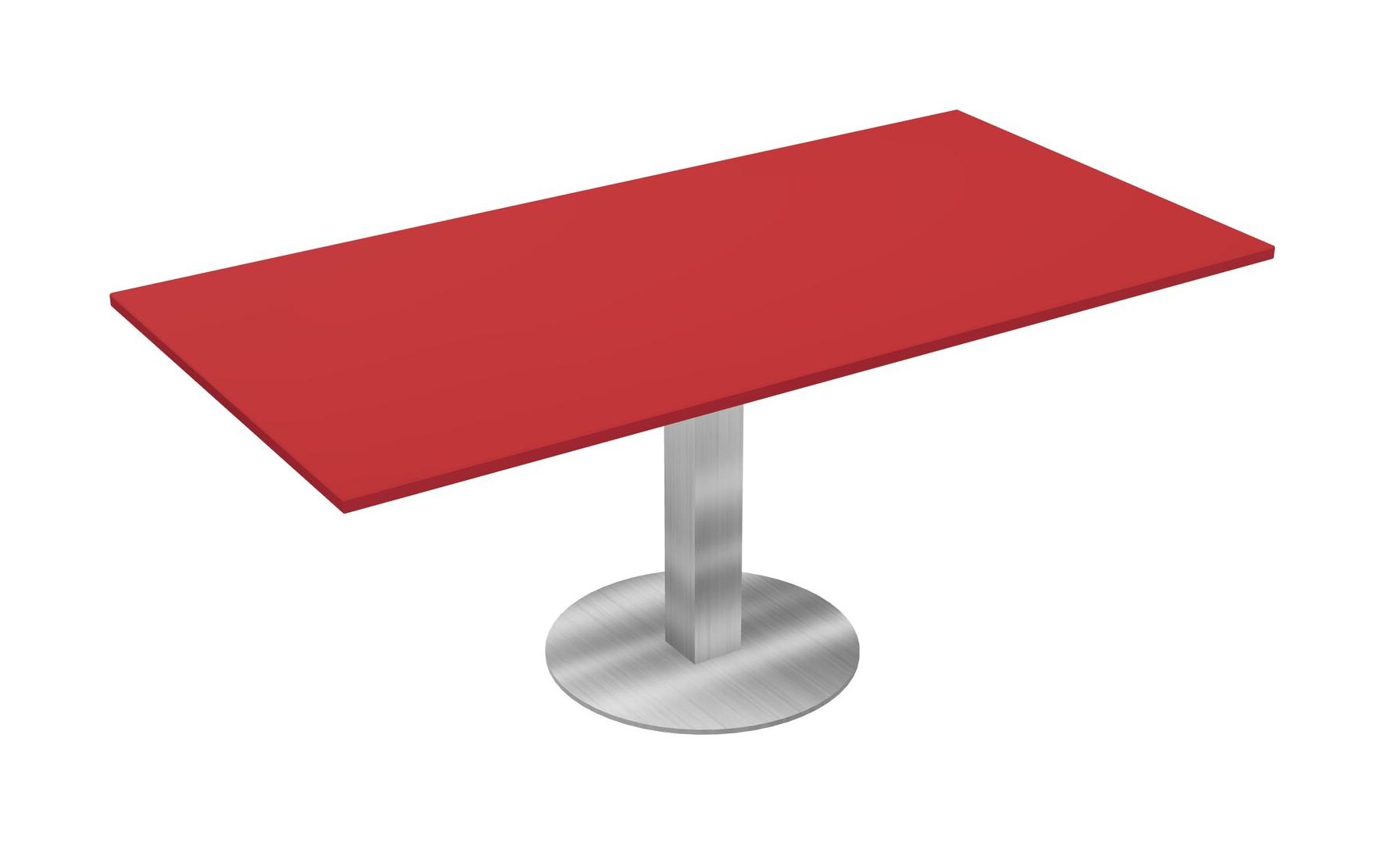 Modular Office, Restaurant, Cafeteria, Lunch Room & Food Service Table With Prism Red Tabletop & Chrome Square Leg & Chrome Round Base Plate