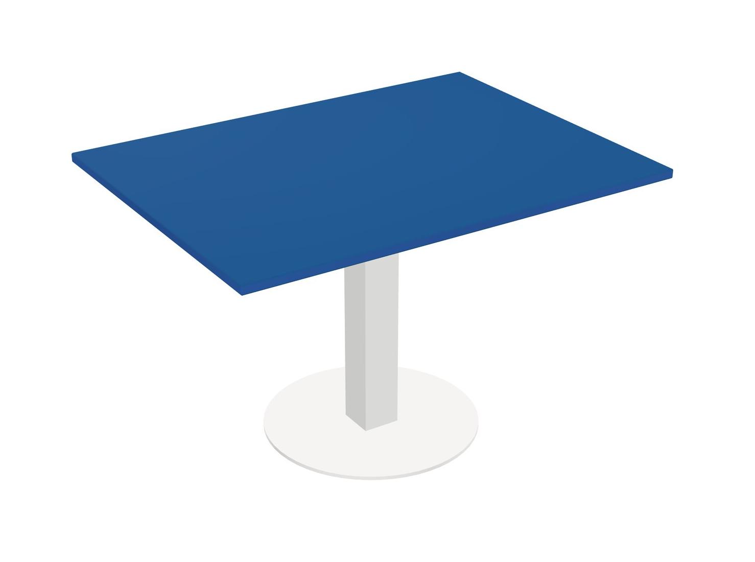 Modular Office, Restaurant, Cafeteria, Lunch Room & Food Service Table With Prism Blue Tabletop & White Square Leg & White Round Base Plate