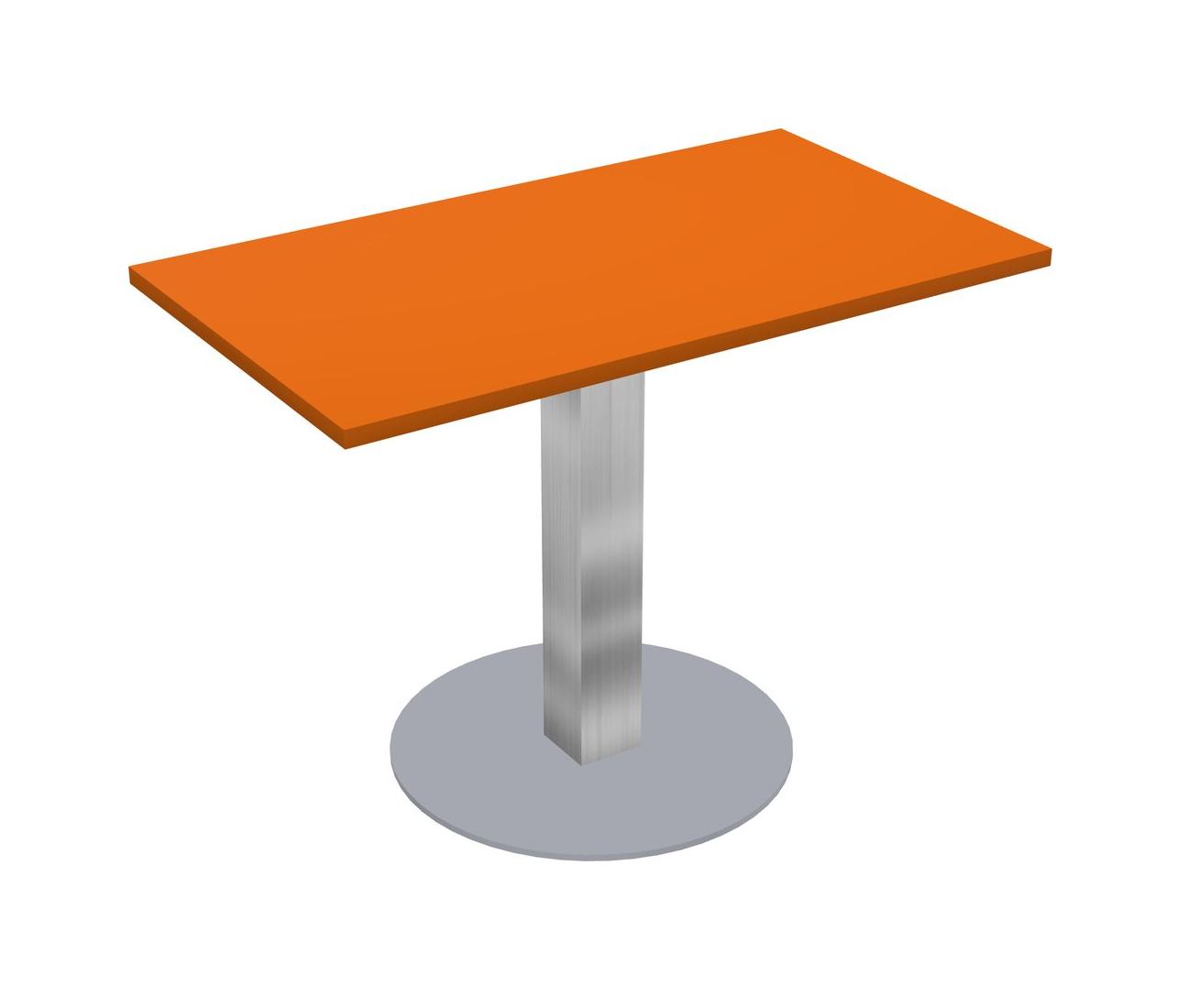 Modular Office, Restaurant, Cafeteria, Lunch Room & Food Service Table With Orange Tabletop & Chrome Square Leg & Grey Round Base Plate