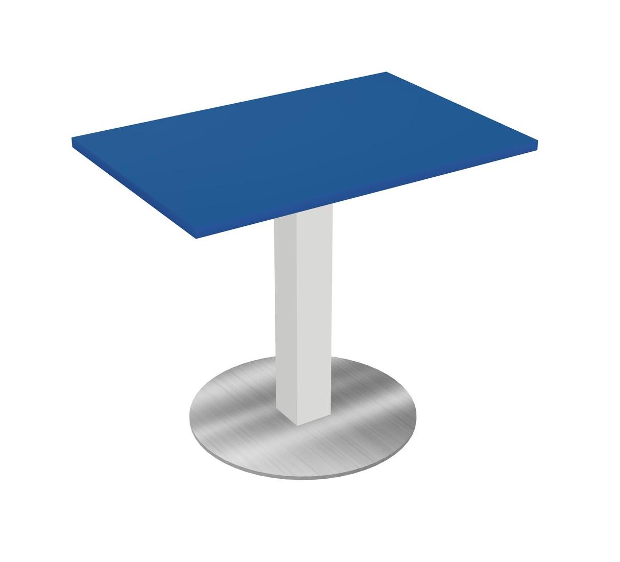 Modular Office, Restaurant, Cafeteria, Lunch Room & Food Service Table With Prism Blue Tabletop & White Square Leg & Chrome Round Base Plate