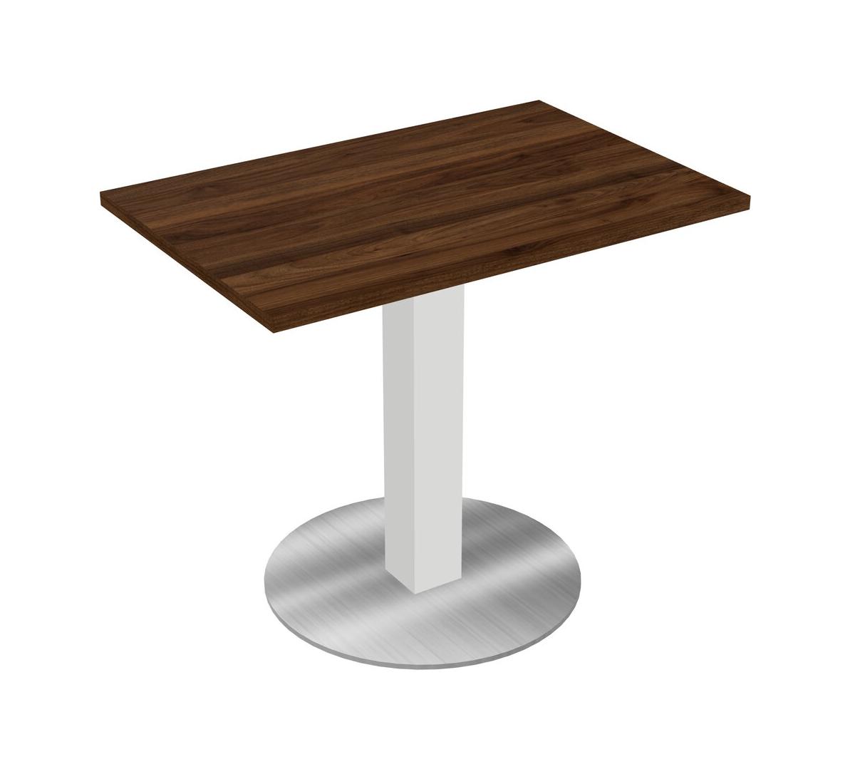 Modular Office, Restaurant, Cafeteria, Lunch Room & Food Service Table With Columbia Walnut Tabletop & White Square Leg & Chrome Round Base Plate