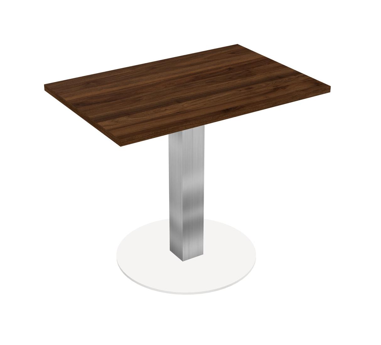 Modular Office, Restaurant, Cafeteria, Lunch Room & Food Service Table With Columbia Walnut Tabletop & Chrome Square Leg & White Round Base Plate