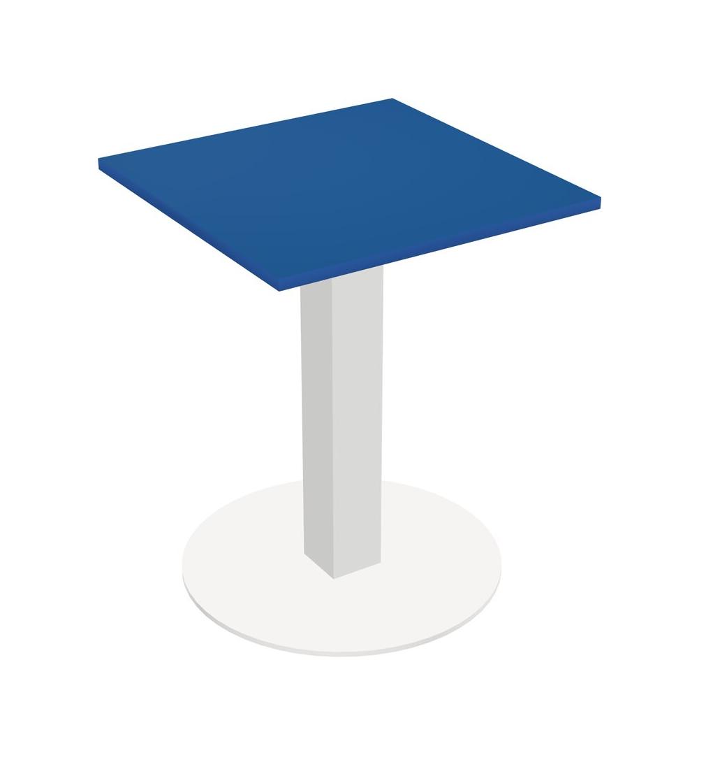 Modular Office, Restaurant, Cafeteria, Lunch Room & Food Service Table With Prism Blue Tabletop & White Square Leg & White Round Base Plate