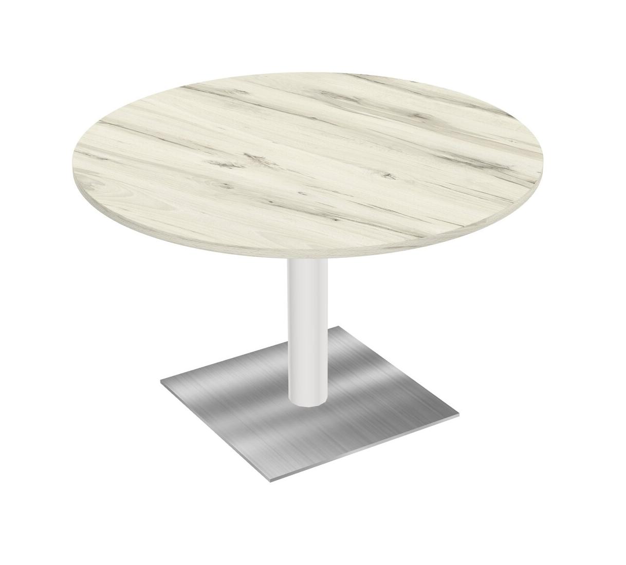 Modular Office, Restaurant, Cafeteria, Lunch Room & Food Service Table With Heinne Holz Tabletop & White Round Leg & Chrome Square Base Plate