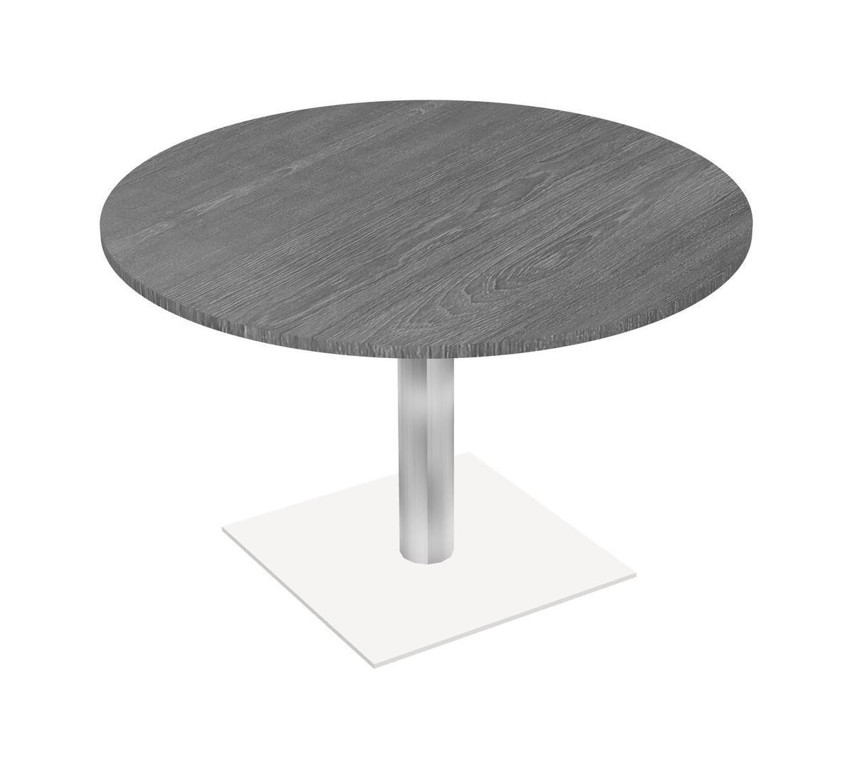 Modular Office, Restaurant, Cafeteria, Lunch Room & Food Service Table With Grey Tabletop & Chrome Round Leg & White Square Base Plate