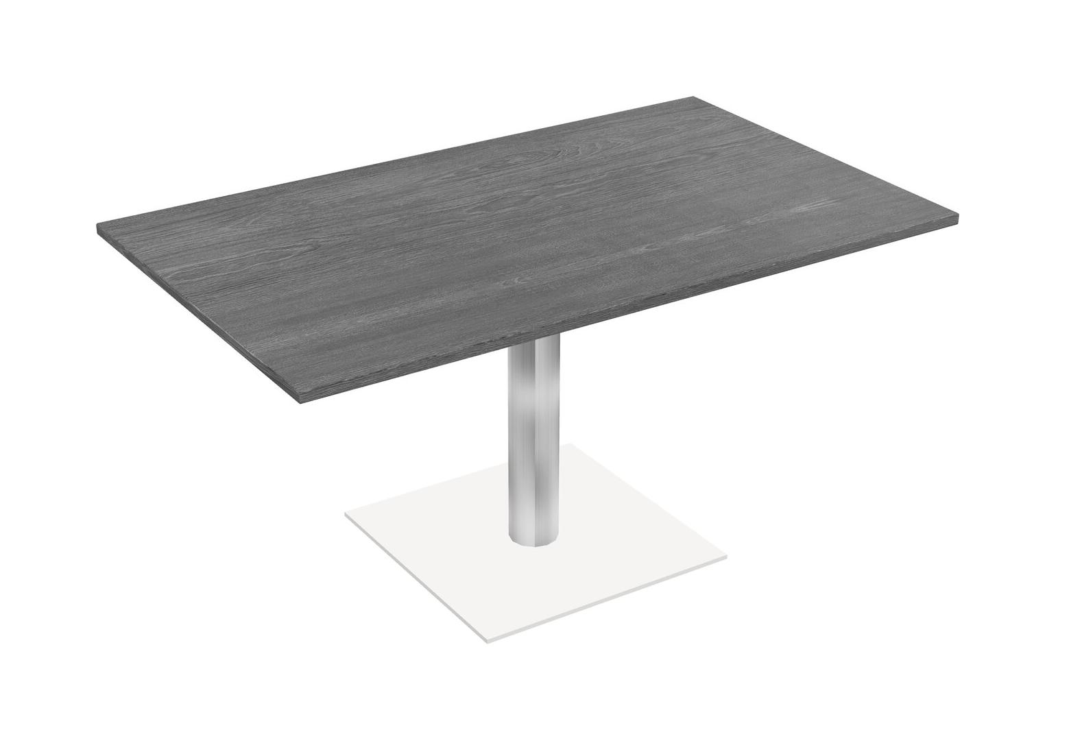 Modular Office, Restaurant, Cafeteria, Lunch Room & Food Service Table With Grey Tabletop & Chrome Round Leg & White Square Base Plate