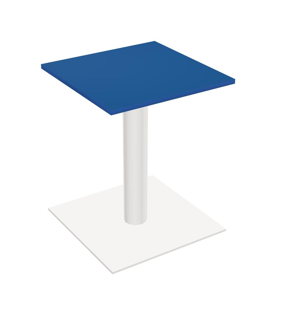 Modular Office, Restaurant, Cafeteria, Lunch Room & Food Service Table With Prism Blue Tabletop & White Round Leg & White Square Base Plate
