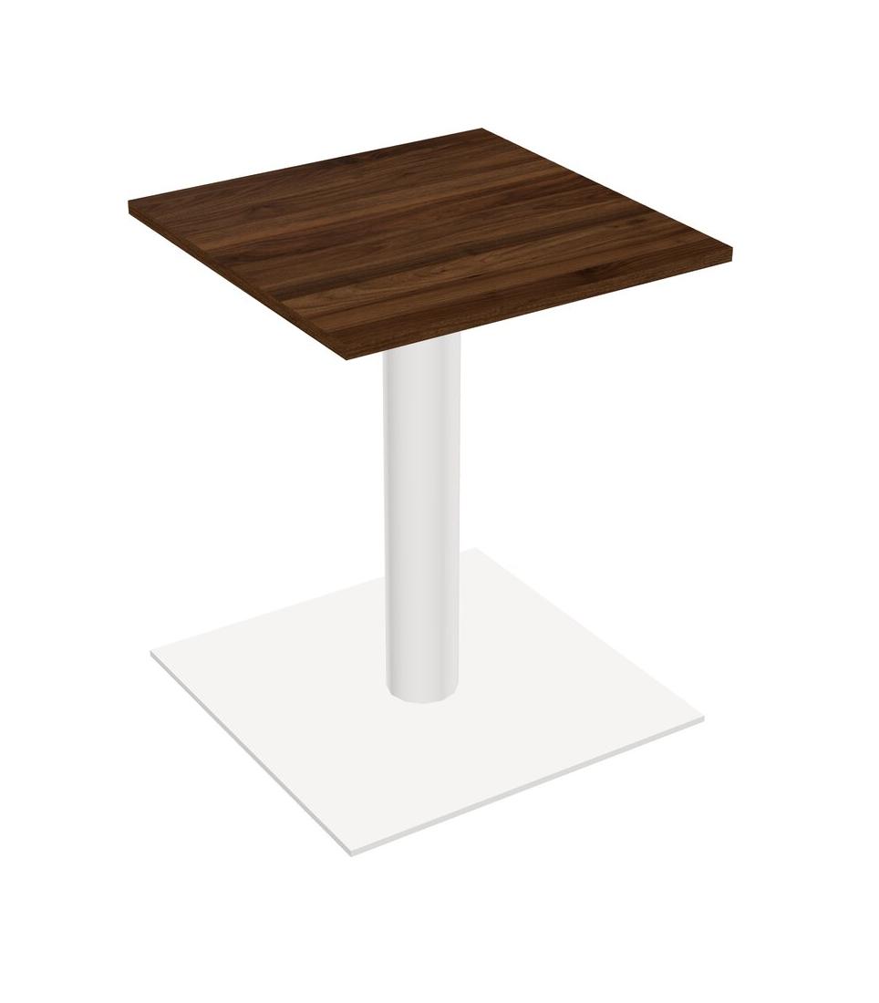 Modular Office, Restaurant, Cafeteria, Lunch Room & Food Service Table With Columbia Walnut Tabletop & White Round Leg & White Square Base Plate
