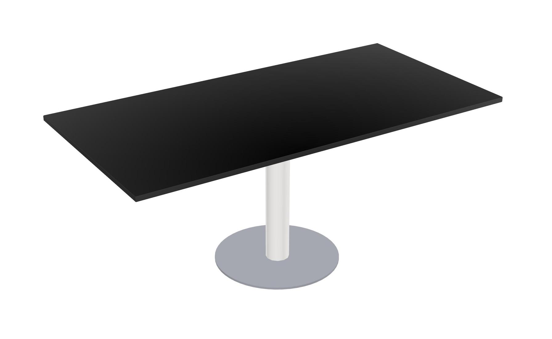 Modular Office, Restaurant, Cafeteria, Lunch Room & Food Service Table With Black Tabletop & White Round Leg & Grey Round Base Plate