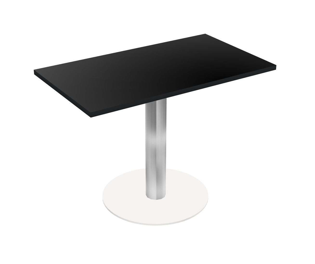 Modular Office, Restaurant, Cafeteria, Lunch Room & Food Service Table With Black Tabletop & Chrome Round Leg & White Round Base Plate