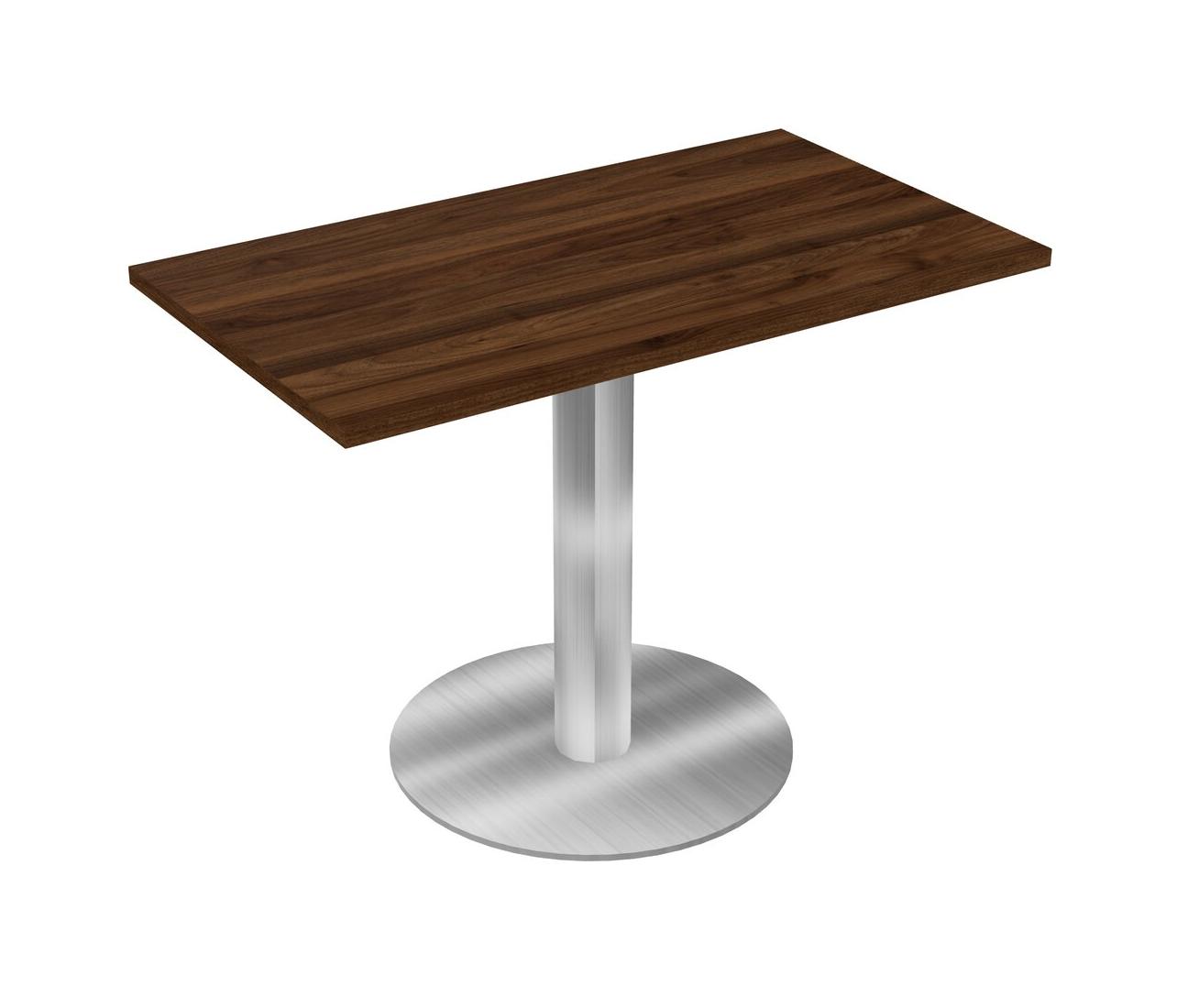 Modular Office, Restaurant, Cafeteria, Lunch Room & Food Service Table With Columbia Walnut Tabletop & Chrome Round Leg & Chrome Round Base Plate