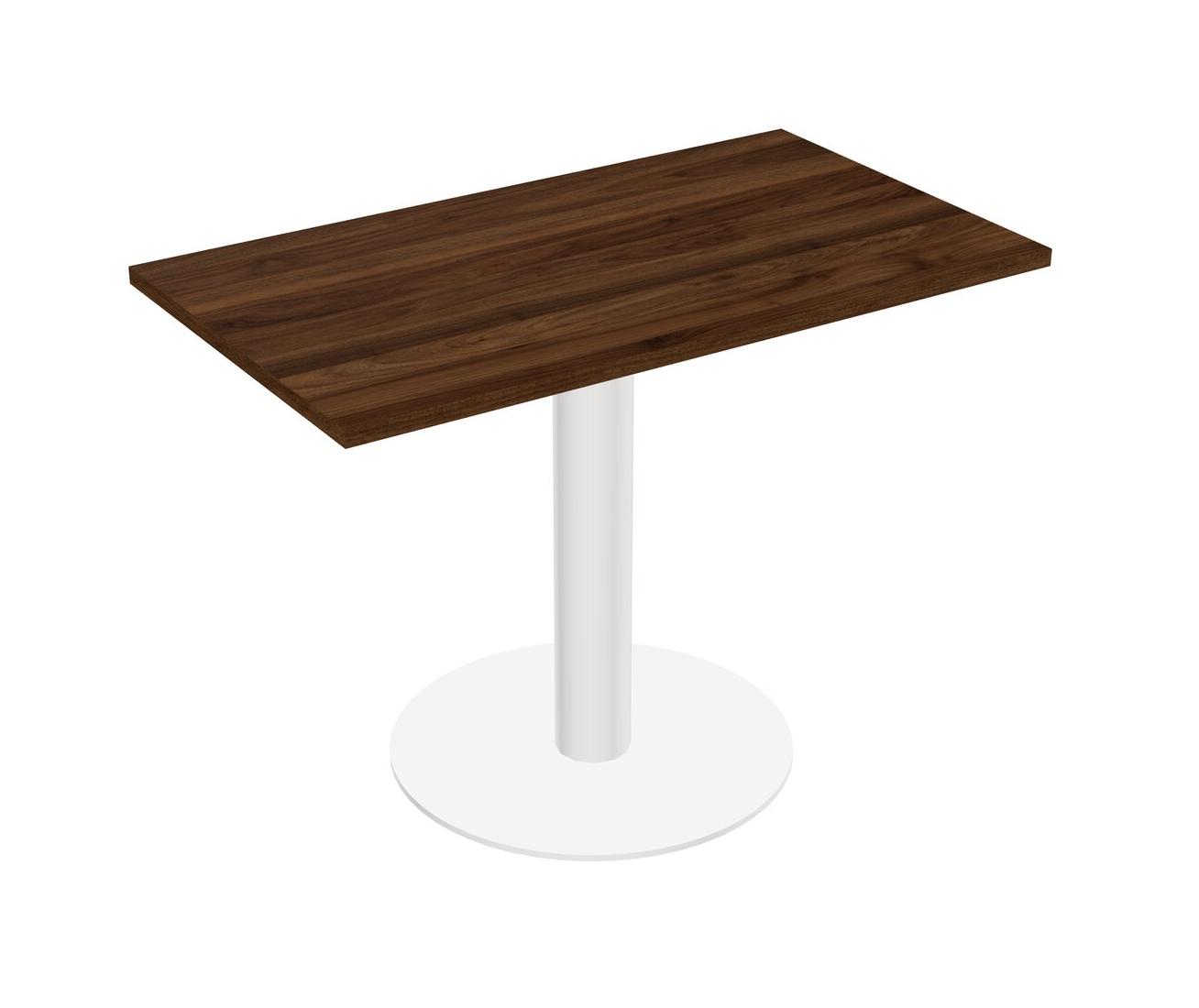 Modular Office, Restaurant, Cafeteria, Lunch Room & Food Service Table With Columbia Walnut Tabletop & White Round Leg & White Round Base Plate
