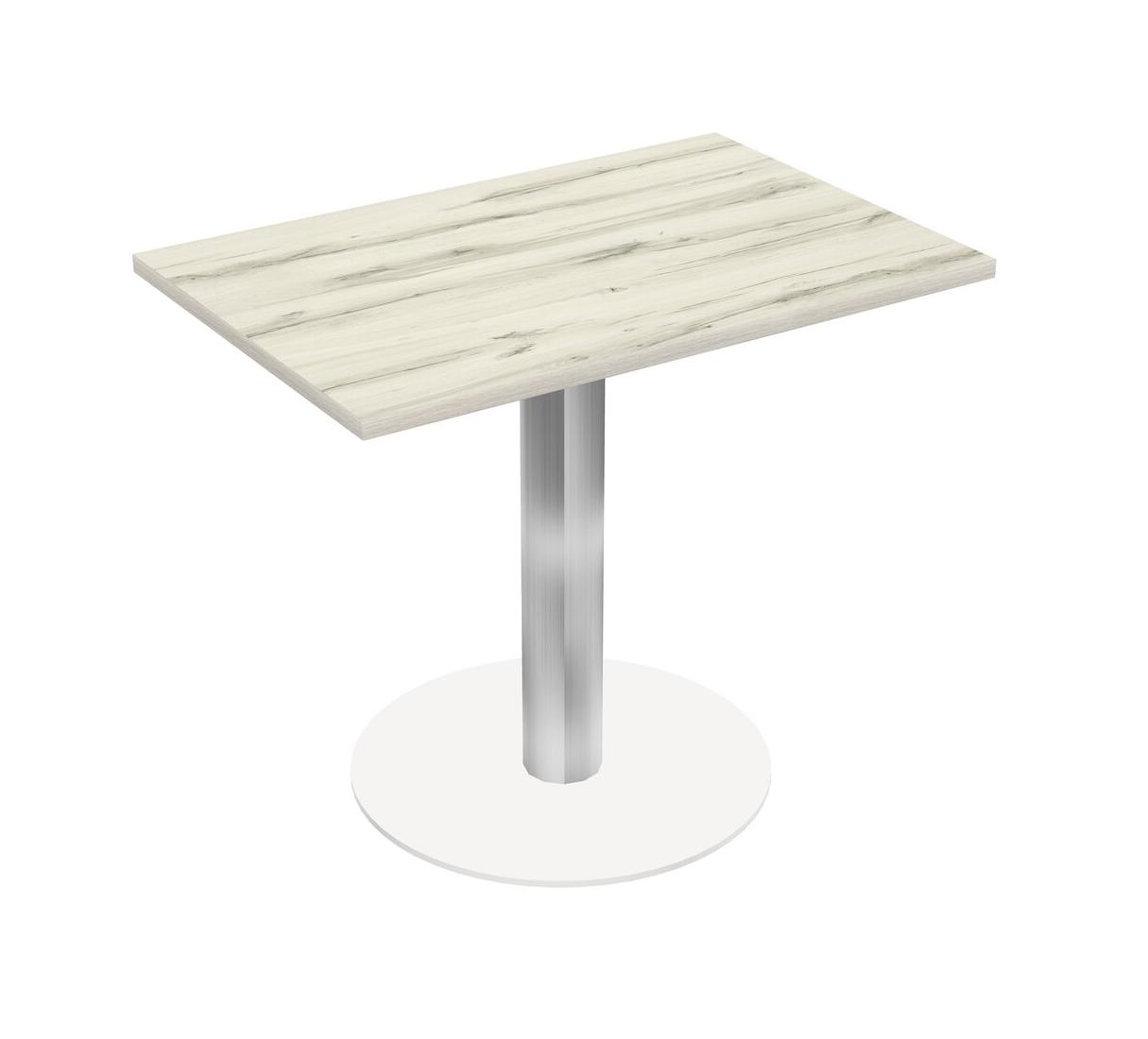 Modular Office, Restaurant, Cafeteria, Lunch Room & Food Service Table With Heinne Holz Tabletop & Chrome Round Leg & White Round Base Plate